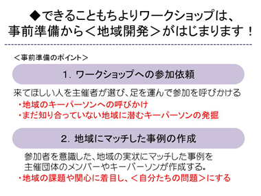 このような形で準備からワークショップ後の展開まで進むということが、少しでもご理解いただけるとありがたいと思います。
