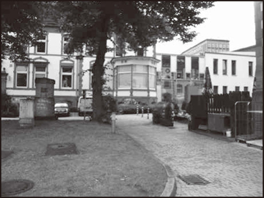 次がまたベルリンにあるモザイクという社会統合企業に行きました。写真には美術館のような立派な、歴史的建造物のようなものが写っています。これはベルリンのコンサートホールです。コンサートホールの下にモザイクが経営しているカフェがあります。この写真は遠景です。コンサートホールを出たところの広い石畳にはいくつかこういう建物が並んでいますけれども、その間に、外でコーヒーなどを飲めるように机が置かれています。