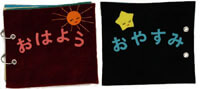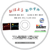 【概要】 様々な動物の目を象っているボタンを留めるとおはよう、はずすとおやすみになる布の絵本に物語をつけてマルチメディアDAISY化。