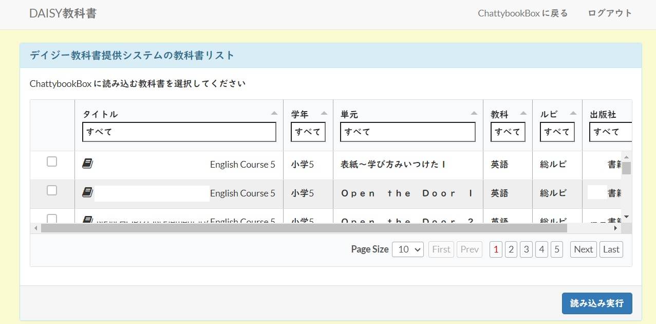 対象の教科書をチェックして、読み込み実行ボタンを押します。