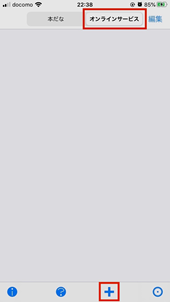 上段のタブで【オンラインサービス】を選択し、下段の【+】ボタンをタップします。