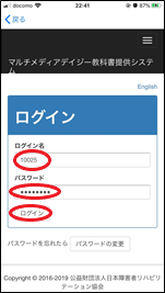 デイジー教科書ID(ログイン名と同じです)とパスワードでログインします。