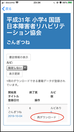 デイジー教科書の一覧が表示されるので、希望するタイトルをダウンロードします。