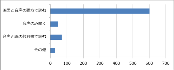 | 画面と音声の両方で読む | 601 | 91.30% |