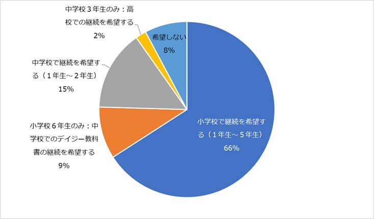 - 日本語が困難な児童が使用しているが、 デイジー教科書を使うことに抵抗がある。 また児童、 教員共にデイジー教科書の授業中の使用にまだ慣れていないため。