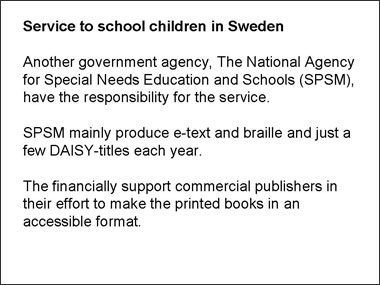 HOME > Access to Information > DAISY > International Seminar on Textbooks in DAISY Format -Future of the Textbooks for All > Situation of Provision of DAISY Textbooks in Sweden