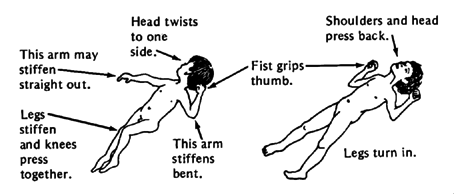 TYPICAL SPASTIC POSITIONS WHEN LYING ON THE BACK:
