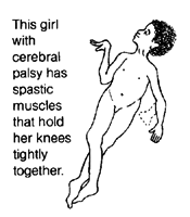 CAUTION: Many suggestions for developing basic skills are discussed in Chapter 34, "Child Development and Developmental Delay," and Chapters 36 through 39 on developing skills for self-care. However, for the child with cerebral palsy, some of these activities will need to be done differently to help reduce and not increase muscle spasms. If any activity increases spasticity, try it differently until you find a way that reduces muscle tension and improves position. |