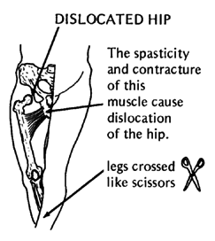 Dislocated hips can also occur after the child is born, either from an accident or as a complication of some other disability- especially polio (due to weakness in the muscles and cords that hold the hip joint together) or cerebral palsy (due tospasticityandcontractures).