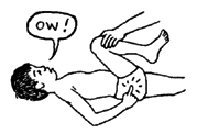 3. To test a slightly older child, bend the knees and compare their height. If one knee is lower, the hip on that side is probably dislocated. |