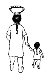 Now suppose that Erica is at a more advanced level of development. She likes using her hands and imitating her mother. Steps for improving her behavior can start from this level. Perhaps her mother can have Erica sit at the river's edge and pretend to help her mother wash clothes. This way Erica will feel closer to her mother and will be less afraid of being left alone. Her mother can talk to her and praise her all the time.