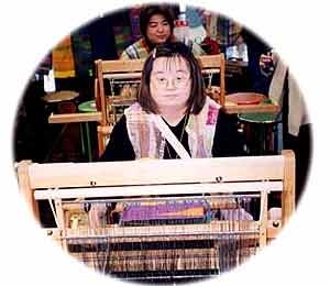 In order to help people with intellectual disabilities to break out of such poor working conditions, SAORI Business Cooperative was established in April 2000 in Osaka. Its 11 members are 5 people with intellectual disabilities, their mothers and Mr. Eiji Jo, a representative of SAORI HIROBA (a NPO working to spread SAORI weaving) who played a key role in establishing the cooperative. Five people with disabilities weave SAORI cloth, and their mothers make such products as wallets, coasters and luncheon mats for sale.
