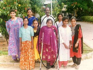 三重苦と私たちは呼んでいます。女性である、貧しい、そして障害者である、この3つの重荷です。そのうちの1人がノーリさんです。この真ん中の女性です。ノーリさんに注目していきましょう。みんな、まさにハリウッド映画になりそうな経験をしています。私も彼女たちから多くのことを学びました。この右端の女性は、今はイギリスで専門家として働いています。皆さん、想像できますか。バンガロールのスラムからイギリスで働くようになったのです。これを私たちは発展・開発と呼びます。