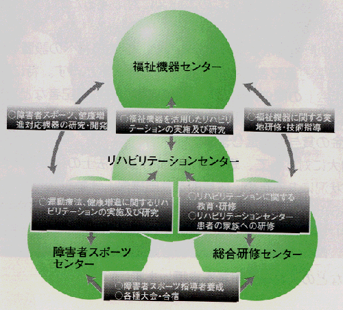 - 市町村に地域リハビリテーションコーディネーターを養成し、利用者から身近なところで、リハビリテーションの目標に基づいてケアプランをたて、保健・医療・福祉等のサービスが総合的に実施、評価されることを目指します。