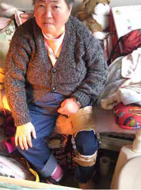 足の悪い菊池さん(母)にとって、段差の多い仮設での暮らしは辛い。