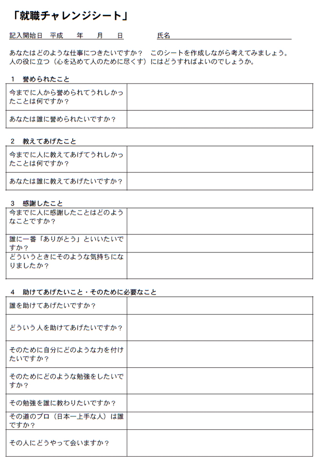 チャレンジシート作成の着眼点は次のとおりである。