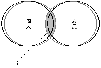 第三者の介入によって、個人と環境が少しコーディネートされ、双方が歩み寄るような形で、重なり合う部分を拡大していこうとしている。I型やII型と同じように、「P」で示された部分が拡大される過 程がエンパワメントであると我々は考えている。