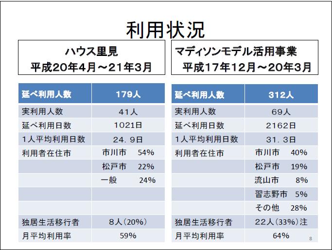 | 独居生活移行者 | 8人(20%) | 独居生活移行者 | 22人(33%)注 |