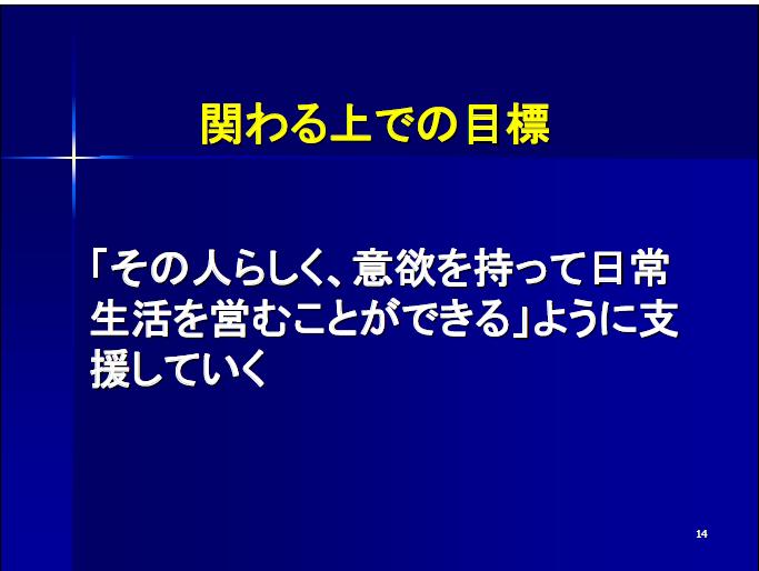 関わる上での目標「その人らしく、意欲を持って日常生活を営むことができる」ように支援していく
