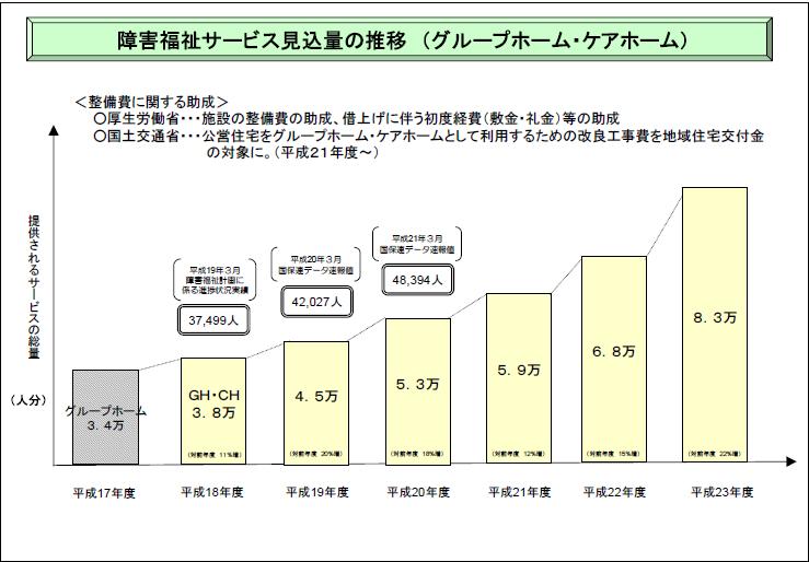 ○国土交通省・・・公営住宅をグループホーム・ケアホームとして利用するための改良工事費を地域住宅交付金の対象に。(平成21年度~)