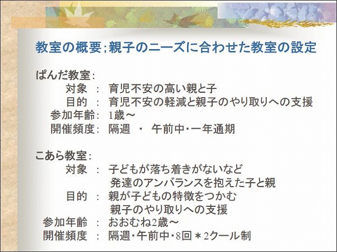 目的:親が子どもの特徴をつかむ 親子のやり取りへの支援