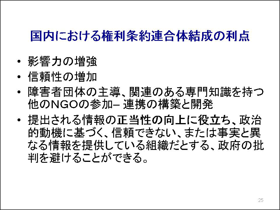 権利条約の実施にあたり、障害者団体へのアドバイス